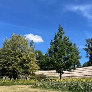 青とクリーム色のフリルシュシュ