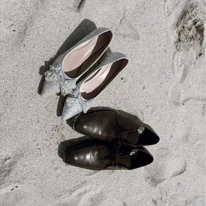 韓国 リボン付き黒ニットビーニー
