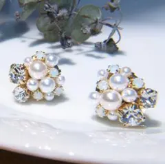 スワロフスキー☆華やかクリスタルパール&ビジューピアス/イヤリング