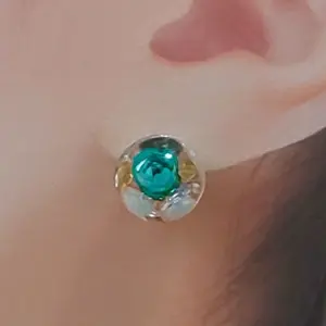 No.584 レジンピアス ハンドメイド 【球体】小ぶり 一粒 グリーン系