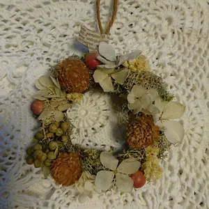 Catherin Cottage くすみカラーベージュ レースバラ柄ドレス130