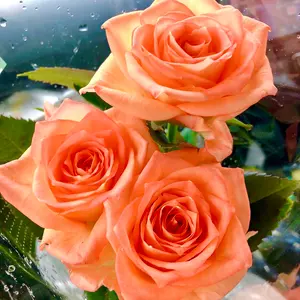 ハンドメイドピアス お花とオレンジパーツのピアス アクセサリー【匿名配送】