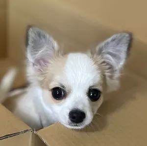 子犬デザインレース付きましファーポーチ①