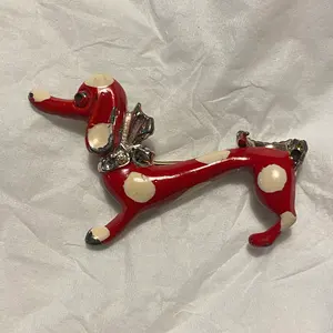 犬の形 シルバーブローチ クリスタル装飾