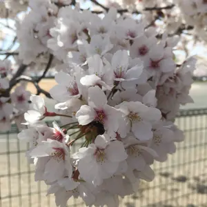 藍色布地で桜柄のちりめん玉とビーズの和風ピアス