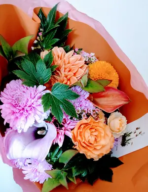 フラワーシュシュ ピンク ゴールド