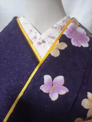 大人っぽい落ち着いた色合いの紫地色に桜柄が素敵な振袖を紫系の袴とコーディネートしました。 振袖の素材は表地、裏地共に正絹です。 長襦袢は濃い目の黄色地に桜模様が可愛いです。 正絹で刺繍半襟付きです。 重ね襟はレース仕様の黒です。未使用品です。 細帯はピンク系と黒系のリバーシブル仕様、未使用品です。 袴は未使用品です。 こちらの振袖に袋帯を合わせたら、成人式の晴れ着としてご活用して頂けます。 こちらのセットは未使用に近く、ご着用に差し支えるような傷や汚れは見当たりません。 レンタルよりお得です。 ぜひご活用して下さいませ。 【出品内容】 振袖 長襦袢 重ね襟 細帯 袴 【振袖サイズ】 身丈162cm 裄丈69cm 袖丈105cm 前幅24cm 後幅30.5cm 【長襦袢サイズ】 身丈131cm 裄丈67.5cm 袖丈105cm 【袴サイズ】 紐下95cm ズリ落ち防止ヘラ付き 多少の測り違いはお許し下さい。又、ご覧頂きます機種によりお色目に多少の違いが生じることがあると思いますのでご承知下さいませ。 - 色: 紫色 - デザイン: 花柄 - スタイル: 振袖 - 素材: 正絹 ご覧いただきありがとうございます。