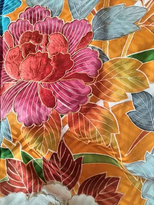 ◆1197◆六通柄 袋帯 ふくれ織り 植物柄 牡丹唐草 正絹 着物帯 和装