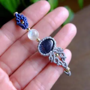 水晶 ロッククリスタル ラフ原石 マクラメ編みペンダントネックレス 3461