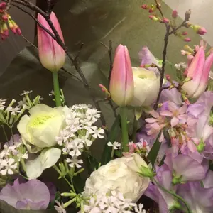 美品 Dukkah カーディガン F アイボリー 花柄 ニット 羽織り 秋冬