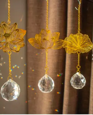 No.825 ゴールドフラワー*ガラスドロップ ハンドメイドイヤリング ピアス