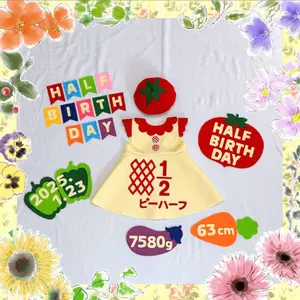 こちらは専用ページになります。 ご注文の方はオーダーページからお願いいたします。 ♡ さー様ご確認お願いします ♡ ワンピース 1,500円 襟、ボタン ⑥ 100円 トマト帽子 500円 ガーランド 400円 合計 2,500円 通常配送・・・7日程いただいてます。 お急ぎ便・・・3日以内に配送+300円にて承ります。 ******************** ワンピース 1,500円 (くるみボタンに変更 +100円) トマト帽子 500円 リボンカチューシャ 350円 レースカチューシャ 500円 リボン 100円 野菜セット 800円 ガーランド 400円 スナップボタン 100円 お急ぎ便 300円 ******************** ☀︎オプションのみは販売は送料210円いただきます。 ♡お名前を無料でお入れいたします。 ご購入後にメッセージにてご連絡ください。 ♡襟、ボタンの形を選んでいただけます。 ①〜⑥の中からお好きな形をお選びください。 ③、⑥はくるみボタンを使用しております。(+100円) ♡折り畳んで発送させていただきます。 折りジワが付いている場合は当て布をしてアイロンをおかけください。 ♡アミアミや◯◯ハーフのお名前、数字、野菜セット、トマト帽子のヘタの部分、リボンカチューシャはホットボンドで接着しております。 しっかり接着しておりますが 剥がれてしまう可能性があります。 その際は多めのボンドを着けていただいて、丸一日触らずに乾かしてください。 ご購入希望の方はコメントください。 専用ページをお作りします。 #キューピーハーフ #ハーフバースデー #生後半年 #生後6ヶ月