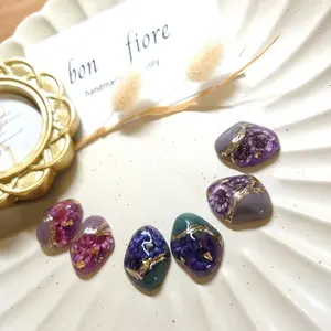 残り1点 パープル お花 パール ハンドメイドピアス イヤリング