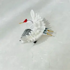 正絹を使った縁起の良い鶴の髪飾りです。 【鶴が縁起が良い理由】 鶴は一度つがいになると、生涯を共に過ごすとされ、夫婦円満や絆の強さを願う際に登場することが多いです。また、鳴き声が美しく、遠くまで届くことから、「天に届く鳥」とも考えられています。 ◎デザイン 鶴の羽の細かな細工と、ダリアの華やかさが見る人をも釘付けにするアクセサリーです。 日本の良き文化を感じられ和装の花嫁様にお勧めです。 特別な方へのプレゼントはもちろん、ここぞというシーンに選んで頂けると嬉しいです。 発送時は大事にお箱に入れて発送致します。 【写真4枚目】 【サイズ(全てcm表記。目安の数値です。)・重さ】 ・コームかんざし 全体 横15×縦9.5×高さ4 重さ 20g 花のみ 大きいダリア7:直径5.5 高さ2.0 小花:2〜3(お花の種類によって異なります。) ※他の花はこちらのサイズを参考になさってください 金具 (ブラック)21山コーム ・鶴コーム 鶴のみ 横9×縦8×高さ2 金具 (ブラック)10山コーム 頭の角度、首の角度は好きな角度でお使い頂けます。 ・小花のUピン 小花:2〜3(お花の種類によって異なります。) 重さ 1.5g Uピンの長さ 5.5 ◎素材 正絹羽二重 「正絹 羽二重(しょうけん はぶたえ)」とは、絹100%の糸を使い、経糸を細い2本にした平織り技法で織られた、軽くてなめらかな光沢のある高級絹織物です。着物の裏地などに使われる伝統的な生地で、薄手で繊細な風合いが特徴です。 ※注意事項 *つまみ細工は技法の特性上糊の跡がついてしまう場合があります。表面には極力染み出ないよう丁寧に接着しております。 *写真ですが、実物と同じ色味の写真になるように心がけて撮影しておりますが、多少の誤差があるかと思います。ご理解頂きますよう、よろしくお願い致します。 *販売価格の値下げは受け付けておりませんので、ご了承下さい。 *販売価格は送料込みの価格となっております。 *ご注文の際に作品説明欄をよくご確認してご購入頂きますようよろしくお願い致します。 #結婚式 #白 #ウェディング #着物 #振袖 #ドレス #発表会 #成人式 #卒業式 #七五三 #ヘアアクセサリー #ヘッドドレス #袴 #花結髪飾り