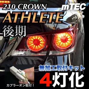 4灯化キット正規品 実用新案、意匠提出 弊社製品を無断コピーした他アカウントの素人盗作品にご注意下さい。 弊社以外の製品も素人クオリティでコピー販売している悪質な出品者であり、テールランプから煙が出た、エラー表示が出た等の不具合報告が多数ございます。 商品名 エムテックフルライティングキット 適合車種 210系クラウン アスリート前期テール装備車専用 *なんでも合うと言った個人盗作品はテールランプにかなり負担をかけております。 テールランプ内部の回路上、前期後期、アスリートロイヤルマジェスタ全てに対応させることは不可能となります。 内容物 フルライティングユニット本体 電源取出しカプラー 新規ブレーキハーネス 取付説明書 商品詳細 テールランプ無加工、車体ハーネス無加工、すべてカプラーオンで可能。 ユニットを取外していただければ純正状態に戻ります。 スモールランプ照度はそのまま、ブレーキ時に外側のテールランプ同様、内側テールランプ強く発光させることができます。 フルキット、安心設計 4灯化に必要な外側からのブレーキ信号取得用のハーネス付属。 各種警告灯、オプション装備への不具合対策設計。 外側テールランプの電源取出しハーネス付きで、ブレーキ信号も配線無加工で取得可能。 トヨタディーラーへの販売実績もあり! 注意事項 値引き不可 当方以外から購入された本製品や、中古で購入された本製品、個人自作品についての不具合のお問い合わせが稀にありますが当方では一切対応できません。 本製品は全て専用設計によりその他のテールランプへの流用は不可です。取付直後は動作しても突然のテールランプ破損、車両電装品重大不具合の前例や車両火災の危険性があり、流用取付されている方はそれらを承知の上で取付されているため当店は一切関係無く、何らかの不具合や事故があった場合も一切対応いたしません。 内側テール、外側テールで搭載されているLED、基板回路、物理的な構造の違いがある為LEDの性能MAX照度でも内側が少し暗くなります。純正テールランプの仕様に依存するもので商品の不良ではありません。 出荷直前に動作確認後に発送しております。商品到着後120日以内の動作不良は無償修理いたします。 トラブル防止のため修理対応のみと致します。 不具合があれば対応しますのでご連絡下さい。