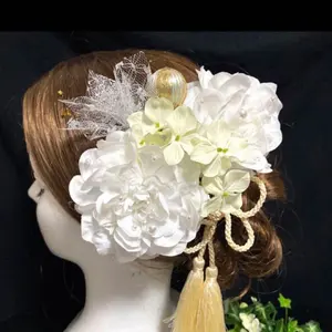 ドライフラワー髪飾り 白ヘッド 成人式 振袖 結婚式 和装洋装 卒業式袴 水引き