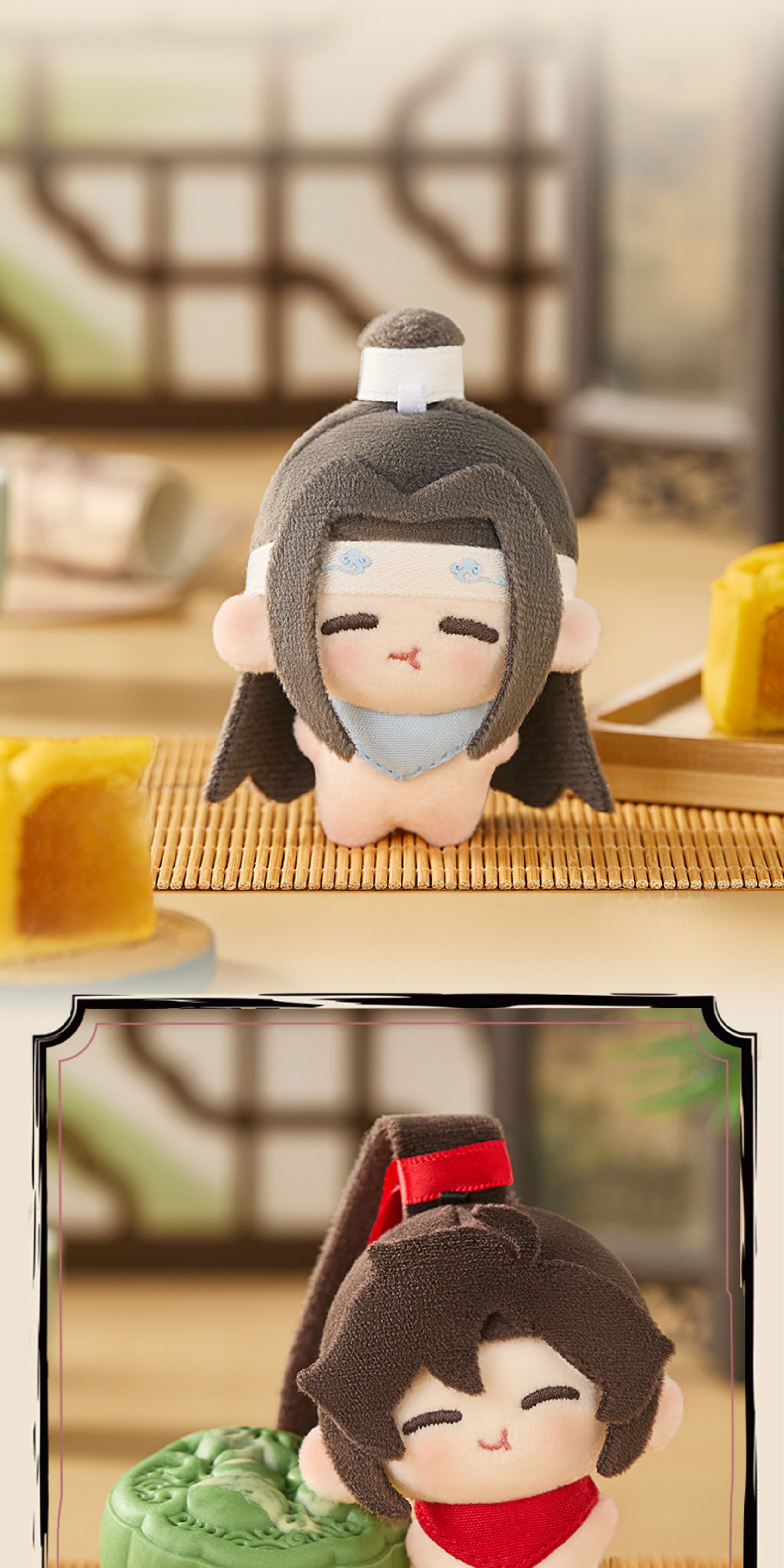 Móc khóa bông hình ngồi nhân vật Ngụy Vô Tiện & Lam Vong Cơ – Ma Đạo Tổ Sư – Chính hãng Cang Mei Er