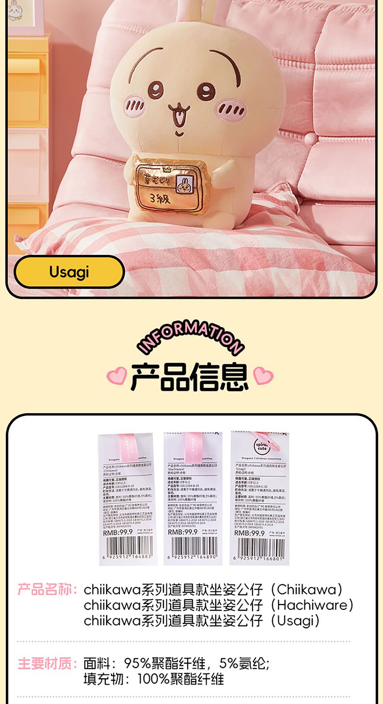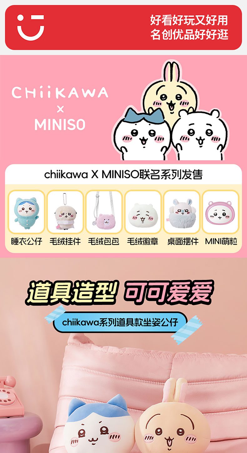 Móc khóa bông Chiikawa & Usagi thỏ hổng – Chính hãng Miniso